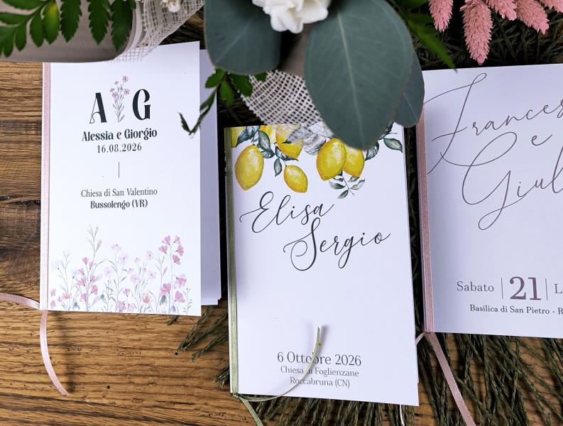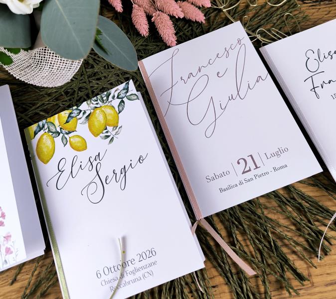 Possiamo realizzare, con la stessa grafica, tutto ciò che ti serve per cerimonia e ricevimento. Così sì che regalerai ai tuoi ospiti una giornata indimenticabile!