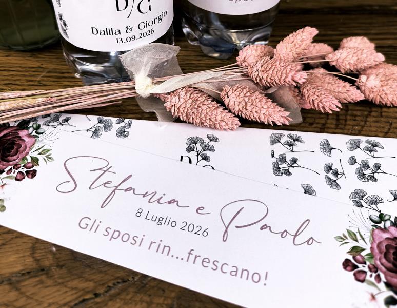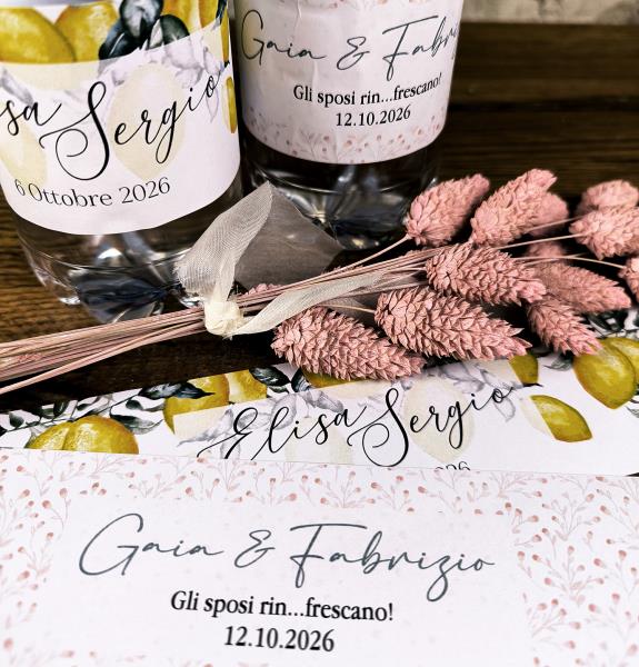 Sia che vogliate inserire una bottiglietta nella wedding bag, sia che vogliate allestirne un cesto all'uscita dalla chiesa, i vostri ospiti sicuramente vi ringrazieranno! Soprattutto se il vostro matrimonio si terrà d'estate sarà un sollievo, per loro, potersi dissetare in un momento della giornata ancora troppo lontano dall'ora dell'aperitivo!